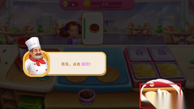 3. 我们的第一道菜是甜甜圈,首先我们点击面团。