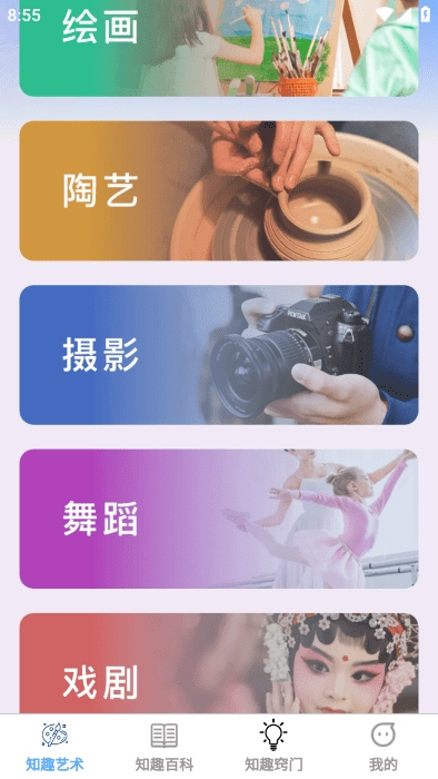 在知趣艺术中,你可以尽情探索绘画、摄影、陶艺等艺术教程,释放你的创造力,带来无限乐趣。
