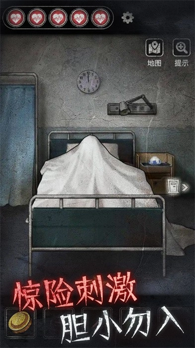2、游戏中的医院,有五个惊骇场景,玩家需要带着冒险精力寻觅自己的生计逃脱之路。