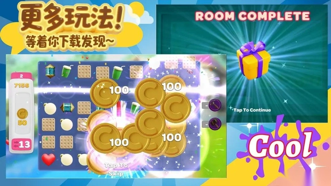 1. 融合消除玩法、房子装扮以及故事剧情,使玩家体验到游戏的多元性。