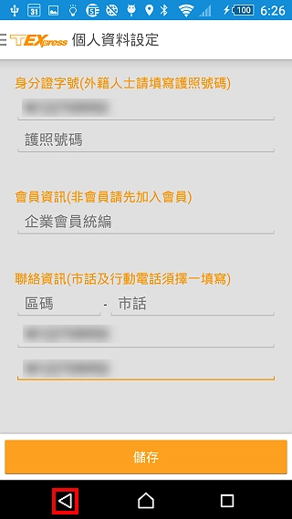 7.输入身分证字号、电话与电子邮件,点选「储存」。