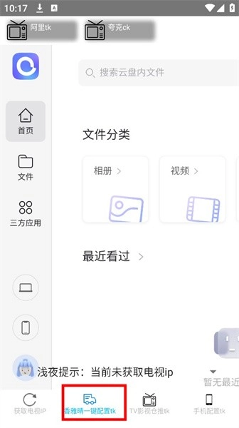 2.登录到后点击下方的【香雅晴一键配置tk】或【TV影视仓推tk】、【手机配置tk】