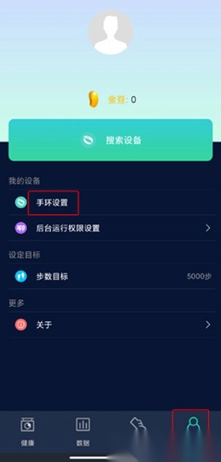 1.打开【我的】页面然后点击【手环设置】按钮。