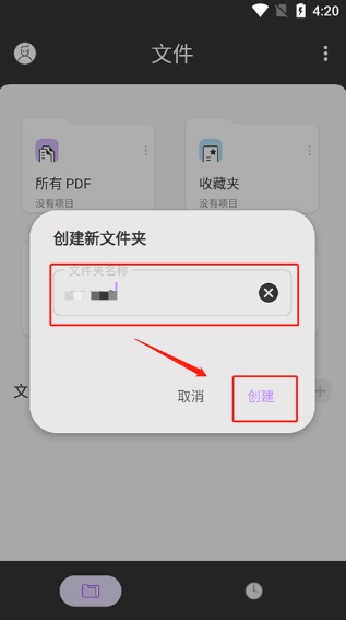 3、创建新的文件夹是需要输入名称的,然后点击创建就完成操作了。