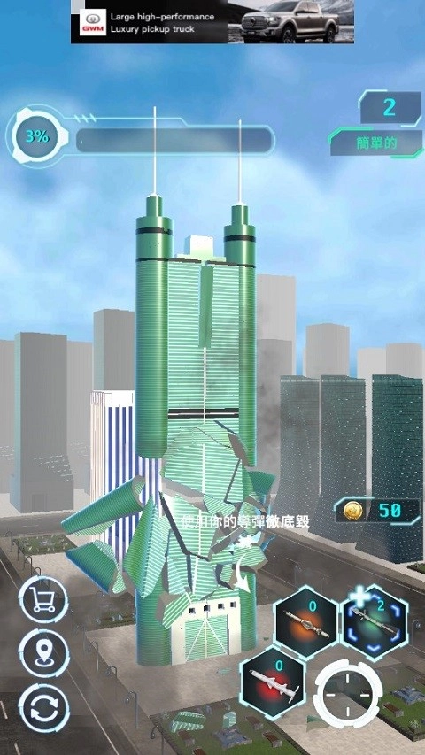 2、游戏支持对损坏的建筑一键进行摧毁,完成游戏中的目标。