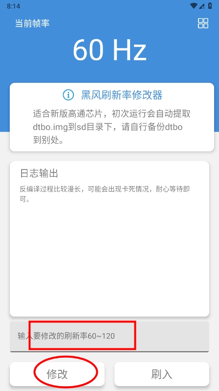 黑风刷新率,适配新版高通芯片,首次运行时会自动将dtbo.img提取至sd目录。它不仅适用于新版本,相比旧版本功能更丰富,既能刷新屏幕,还能自由设置参数。虽功能相对单一,但胜在操作简便且功能强大。反编译过程可能漫长甚至卡死,此为正常现象,请耐心等待。建议在当前刷新率为60hz的情况下使用,不然可能会出现意外状况。