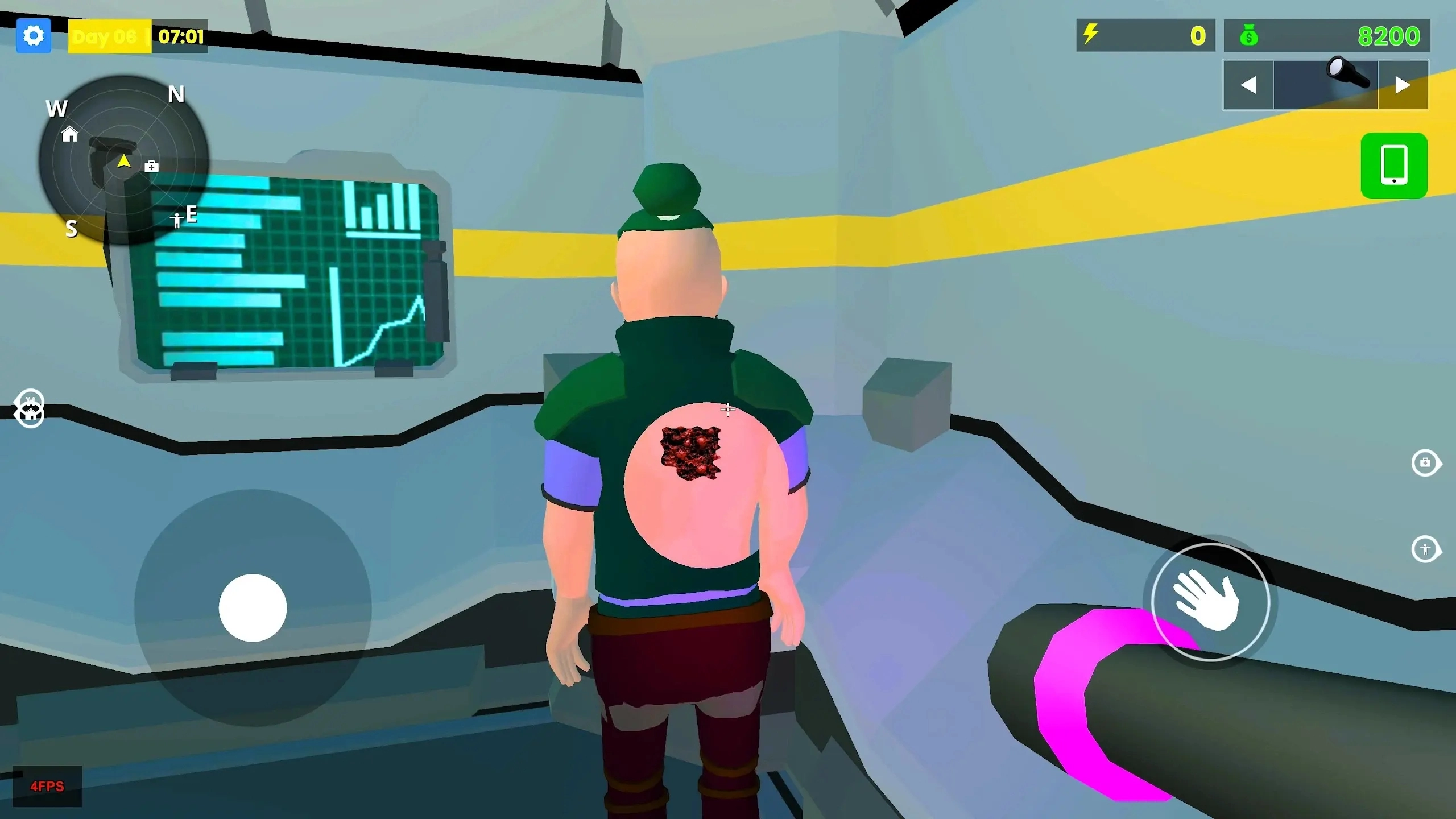 2、你需要细细观察每个进入检查站的人员,使用工具确认他们有没有被僵尸感染,例如查看幸存者身上的咬伤、出血、咳嗽等症状。