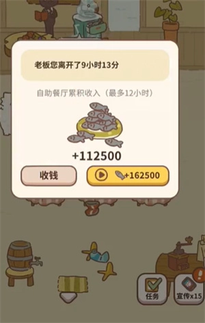 7、还得快速制作食物,一旦顾客吃完,就会得到小鱼干,这个小鱼干可以直接建造设施和解锁新菜谱。