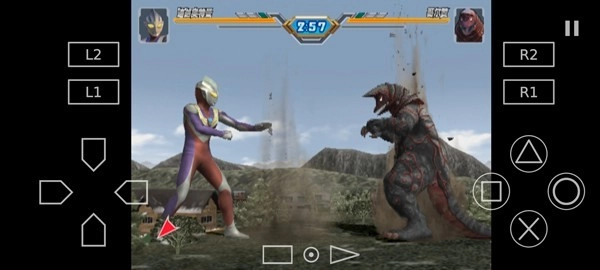 5、进入游戏如图,玩家需操纵奥特曼同怪兽进行对战;