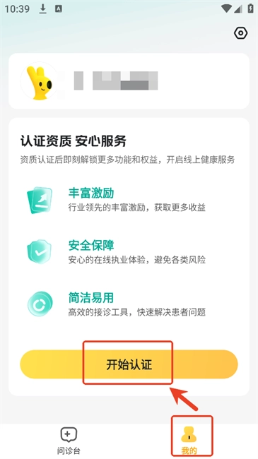 2.登录后在【我的】点击“开始认证”