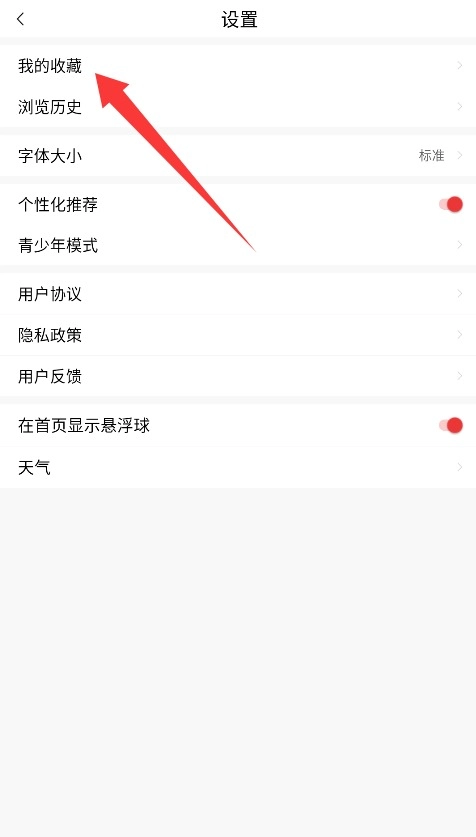 3、打开设置功能点击"我的收藏"标签,所有保存过的内容都会按时间顺序排列,方便随时回看。