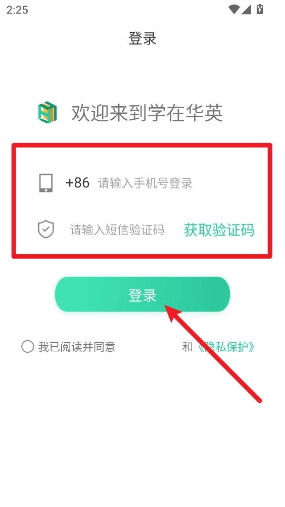 1、打开后输入手机号与验证码,点击按钮完成登录操作。