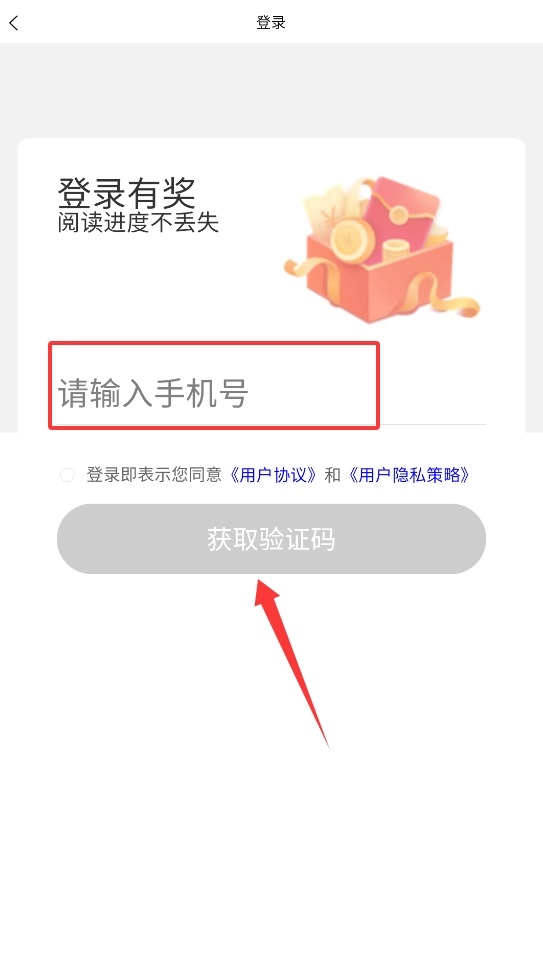 2、点登录按钮,输入手机号收验证码,完成登录能领书币,这些书币可以免费看书。