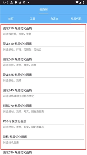 2、如果你手机是骁龙710的话那么即可一键进行设置。