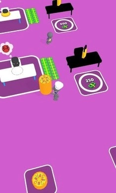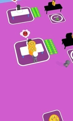 2、自由设计自己的披萨店,放置更多的设施让顾客可以自由用餐,并不断增加顾客数量。