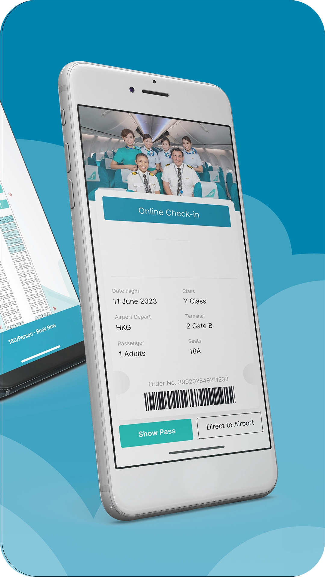 2.选择座位并生成电子登机牌,支持保存至手机相册或添加至钱包