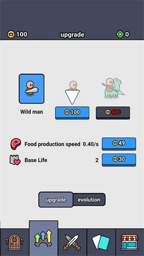 1. 游戏采用横版战斗模式,战斗开始前,玩家能够点击下方左侧第二个按钮,来对不同兵种予以升级。