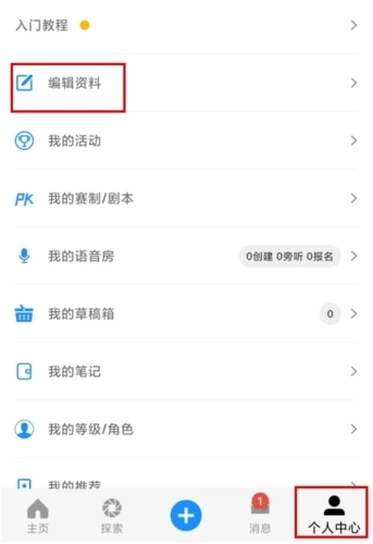 1、在个人中心页面中点击编辑资料按钮;