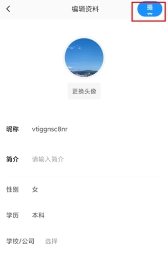 2、在编辑资料页面中可以修改自己的昵称、简介、学历等等;