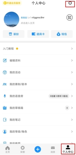 1、在个人中心页面中点击右上角的设置按钮;