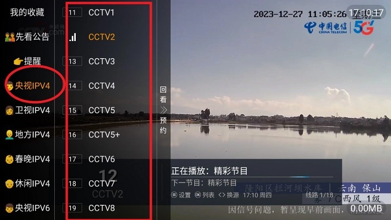 只需点击左侧的央视频道,就能挑选出自己所需的频道。