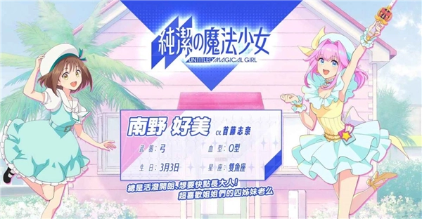 「南野好美」是吃茶店老板家四姐妹里最小的妹妹,她热爱唱歌跳舞,整天都活力满满。尽管她乐意在店里工作,却老是状况百出。然而,店里的常客都特别喜欢她那迷糊的样子。「南野好美」属于治愈型的射手,她的武器是「繁星弓」,当她向弓中注入强大魔力时,就能施展治愈魔法。