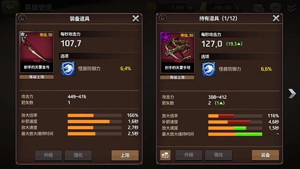 5、当你的装备暂时难以提升时,玩家可以使用金币来强化你最高级的装备或者强化武器,可以大幅度提升你的战斗力。