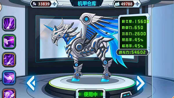 进入机甲仓库,可以看到有着多种多样的炫酷机甲,你可以自由进行搭配升级。