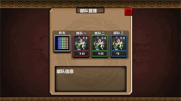 11、招募士兵需要资金支持,各位请根据自身能力来做决定。前期招募30个士兵就可以,正好前、中、后三个阵型,每个阵型安排10个士兵。
