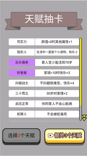 1、所有的人生数据都可以重新设定,这样就能全面提升自己的出生段位,让你成为真正的人生赢家。