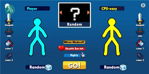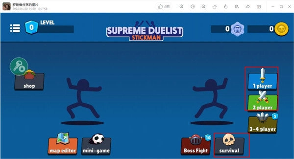 1、接着安装本站所提供的《火柴人至高对决》,安装完成打开进入游戏,其界面如下:游戏内挑战丰富多样,且拥有多个模式可供玩家选择。