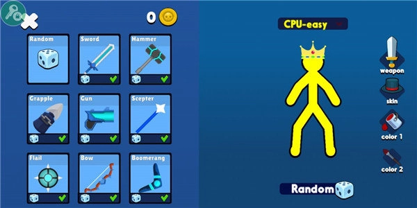 2. 在游戏开始前,不妨先设置一下你的火柴人皮肤与装备,点击屏幕右侧就能操作。