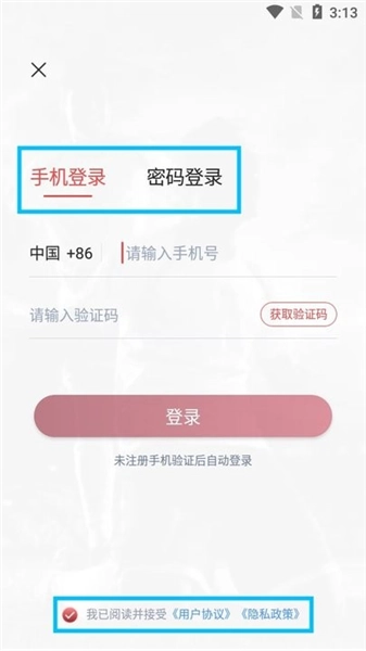 2、勾选《用户协议》《隐私政策》,点击【同意】;