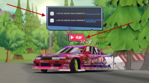 1、成功安装游戏后,你会看到协议页面,勾选同意,接着点击“play”,即可正式开启你的赛车之旅。
