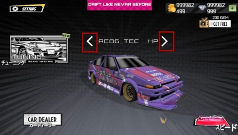 2、当你进入游戏主界面,便能在此挑选你中意的赛车,通过点击箭头实现切换,从而找出最契合自身的那一辆。