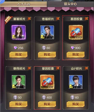 当前人才市场中,通过刷新可得:400人脉等同于1000基因胶囊,100钻石等同于1000基因胶囊,900钻石等同于10000基因胶囊。对于人脉基因胶囊,无疑是一定要购买的;而钻石基因胶囊,则需依据自身所拥有的材料,视情况决定是否购买。