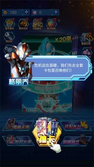 2、开始游戏后,点击抽卡召唤奥特曼战士一起战斗;