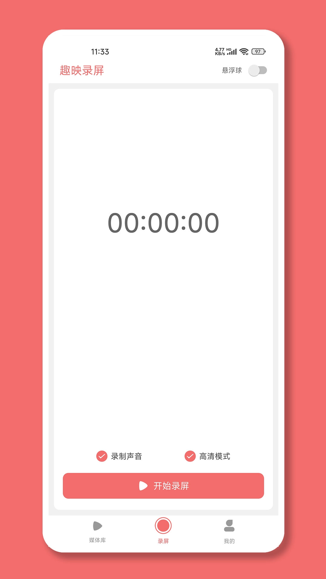 1.打开趣映录屏App,首次使用需要授权屏幕录制、录音、悬浮窗权限