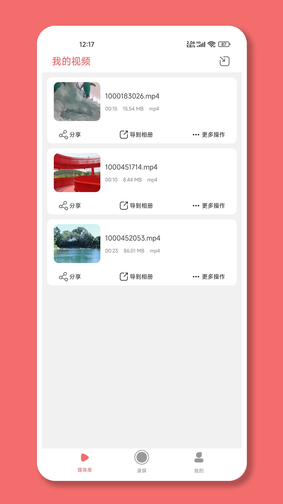 3.录屏后支持一键导出,可轻松满足用户视频录制需求