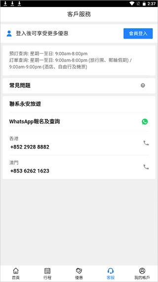 永安旅游,由香港永安旅遊有限公司精心打造,是一款超好用的旅游软件。它为用户提供酒店、飞机票、船票以及各类景点门票的订购服务,助力你更出色地规划旅游行程。在这儿,用户能够预订全球 200 多个城市的机票,从超 40 万间酒店以及众多廉价航空机票中随心挑选,大大减少你的困扰!软件还推出自由行套餐,可直接查看套餐具体内容,支持按需选择购买套餐,并且能查询关于吃喝玩乐的所有信息,旅游服务更为全面!有需求的朋友,欢迎使用!