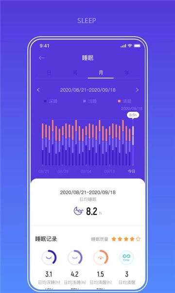 4、提供了睡眠记录统计,可以查看到你的睡眠质量情况。