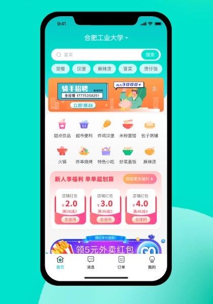 3、成为本地高校的合作伙伴,打通线上线下一站式外卖服务,欢迎您的加入