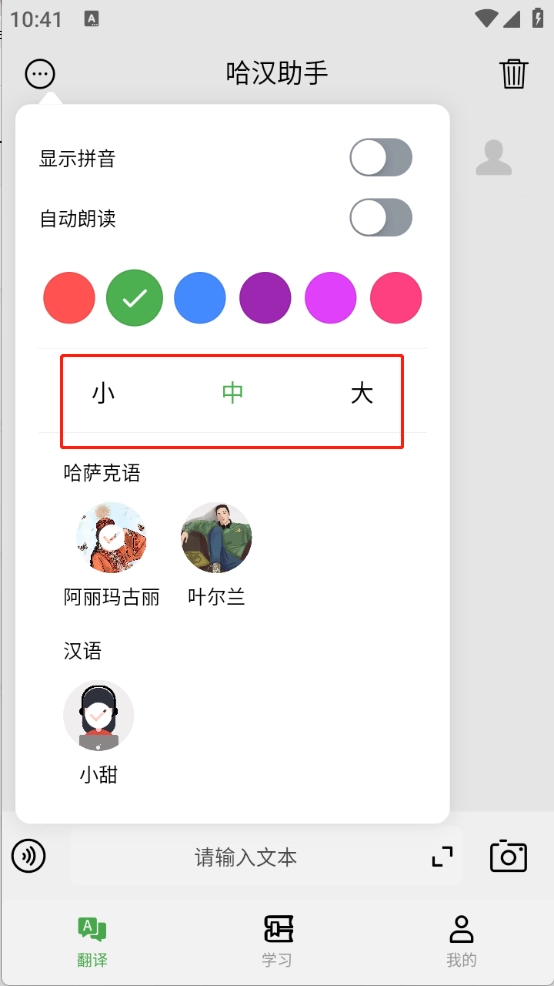 哈汉助手是一款专门针对哈萨克语与汉语相互翻译及转换而设计的软件。它支持语音输入、文字输入以及照片识别等多种输入方式。该翻译器不仅准确率高,翻译速度也十分快捷。此外,它还具备复制翻译结果和语音播报功能,使用起来极为方便。