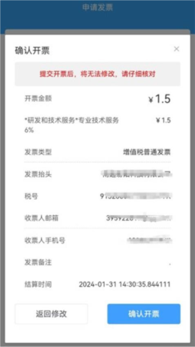 3.在线开具发票:支持自定义发票内容,简化用户的开票流程,提高工作效率。