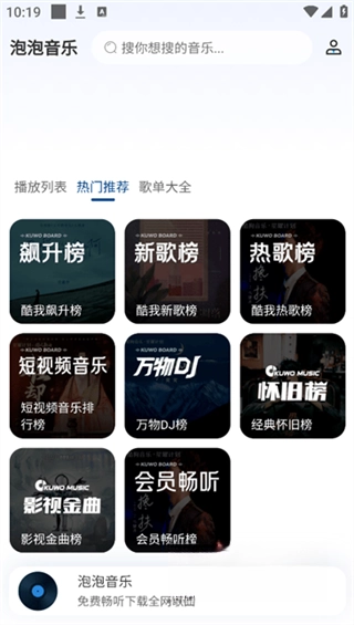 泡泡音乐,一款精致且功能强大的免费音乐应用程序。它毫无限制,能让用户尽情畅享各类高品质音乐,就连无损音质也不在话下,无疑是音乐爱好者的不二之选!不管你钟情于最新的热门金曲,还是对经典老歌念念不忘,泡泡音乐都能充分满足你的聆听需求。