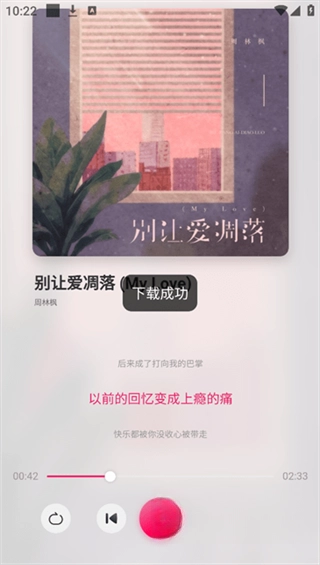 5、播放界面简洁明了,歌词展示极为清晰,跟唱十分便利。此外,右下角设有按钮。虽说目前暂不支持无损格式,但能免费畅听全网歌曲已然令人满足,后续或许会增添无损功能。
