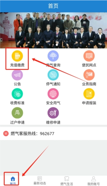 2、登录成功返回首页,一眼就能瞧见 “充值缴费” 选项,直接点击进入缴费页面。