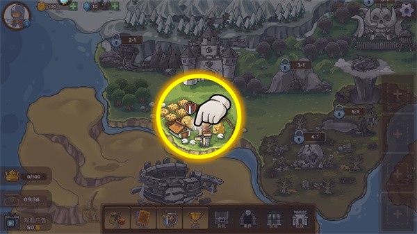 1、进入魔战英雄编年史游戏就可以选择地图关卡开始挑战;