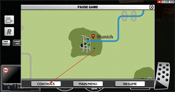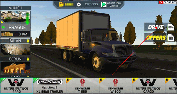 1. 成功安装《Truck Simulator Europe 2 Free》游戏后,进入游戏界面,点击图示位置开始游戏。