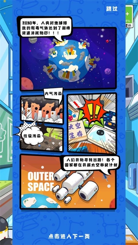 1、在漫画风格的开场背景引导下,玩家置身于宇宙空间站之中,在此,你能够向专属的管理机器人发出指令。